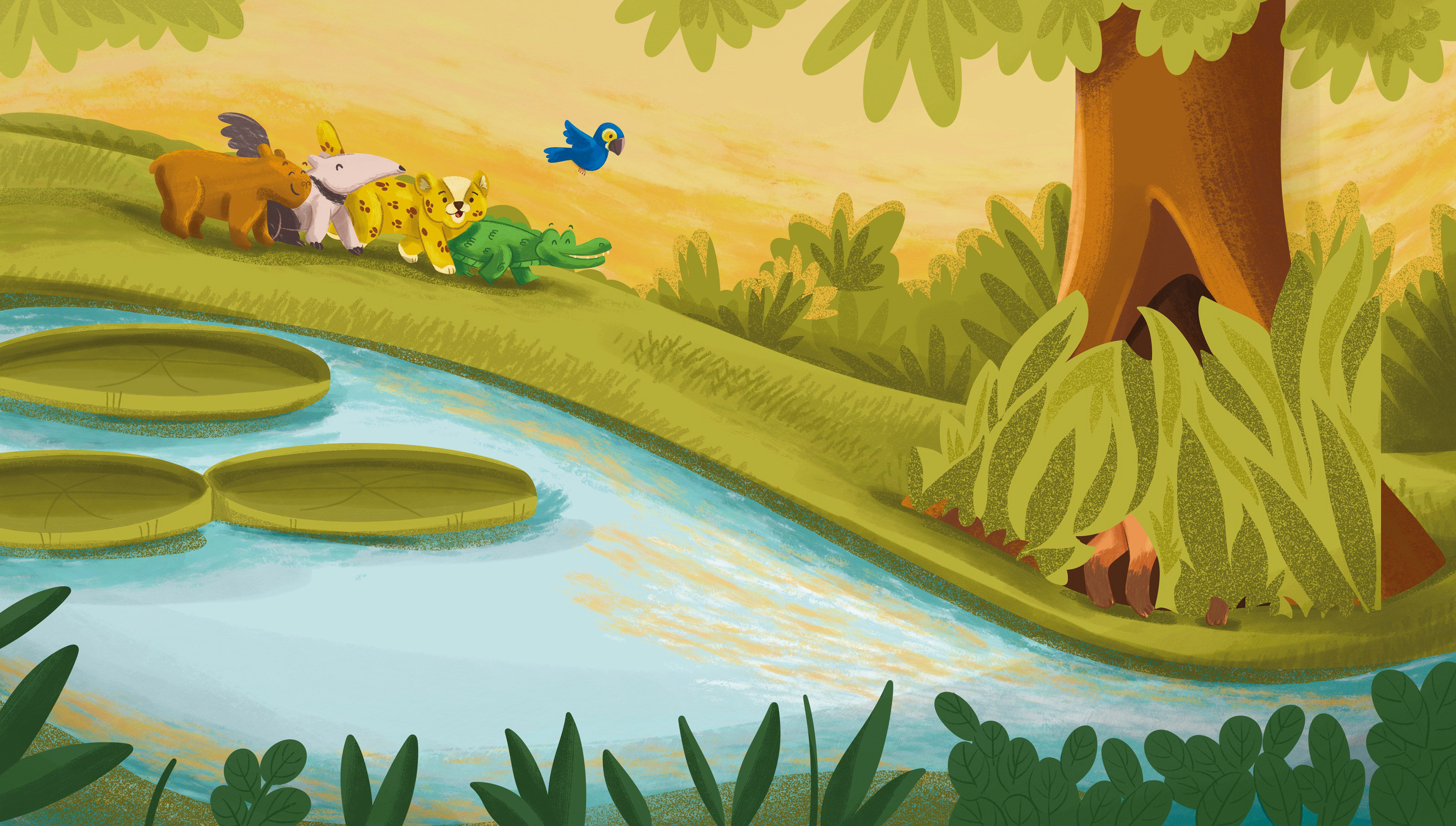 The illustrations were created digitally, exploring textures and colors to bring each scene to life.