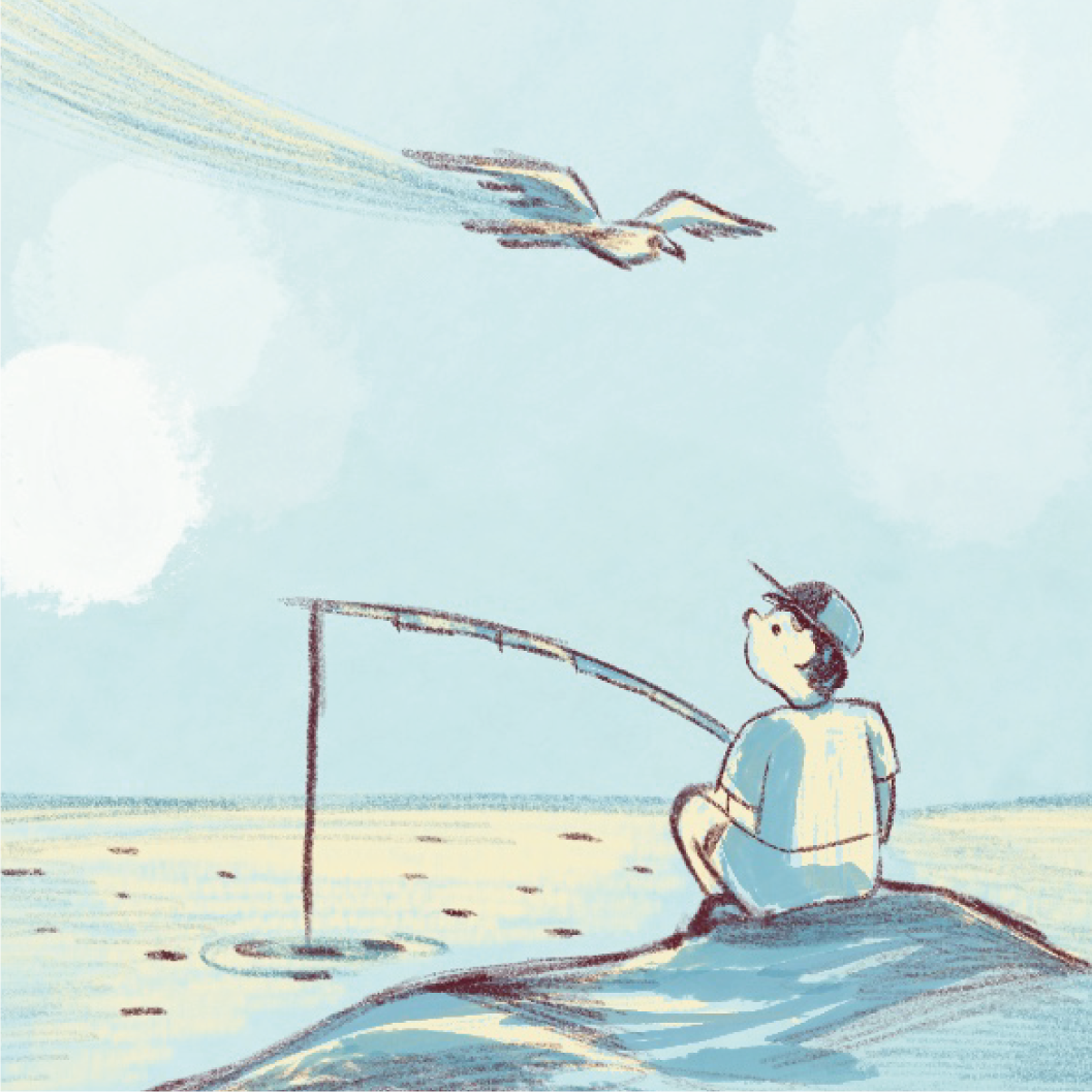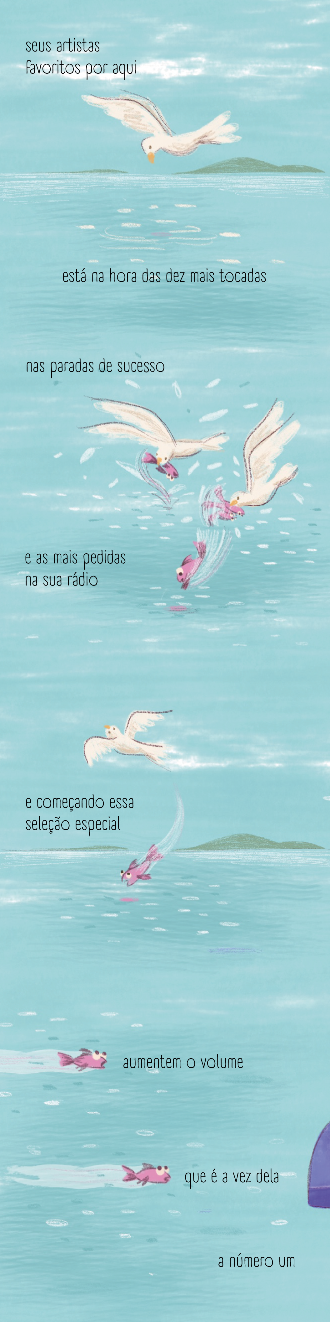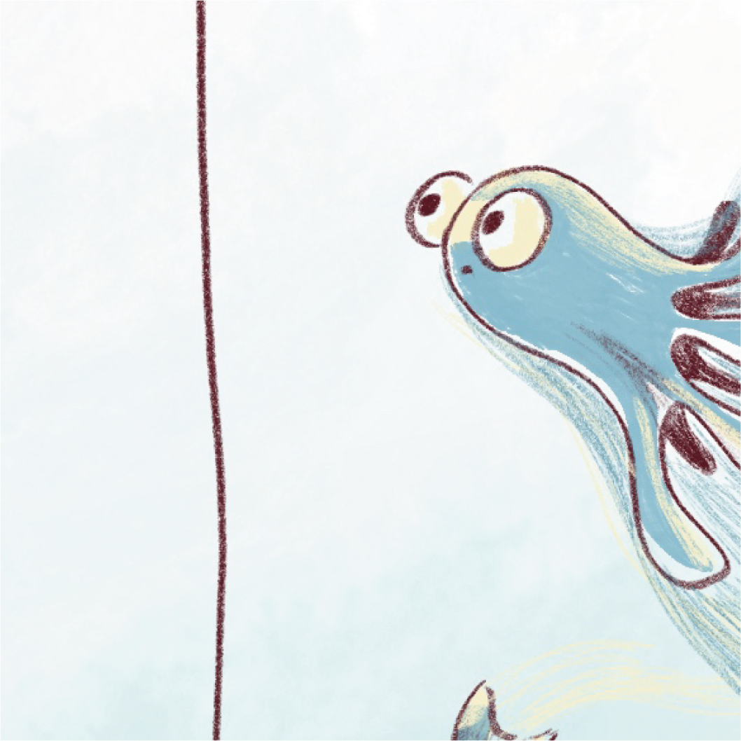The story takes place by the seaside and plays with the contrast between the calm image we usually associate with nature and the lively, bustling rhythm of wildlife all around.
