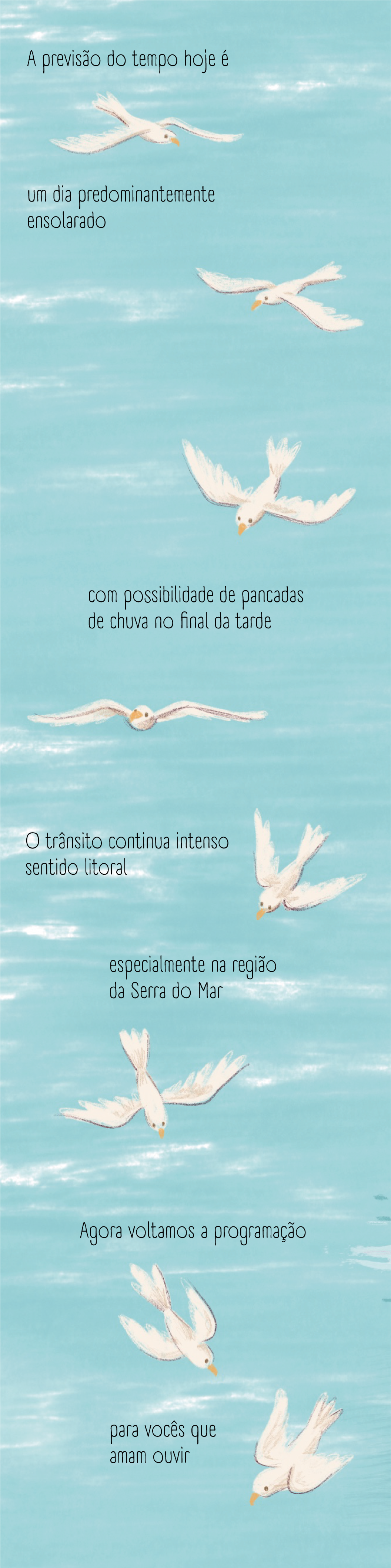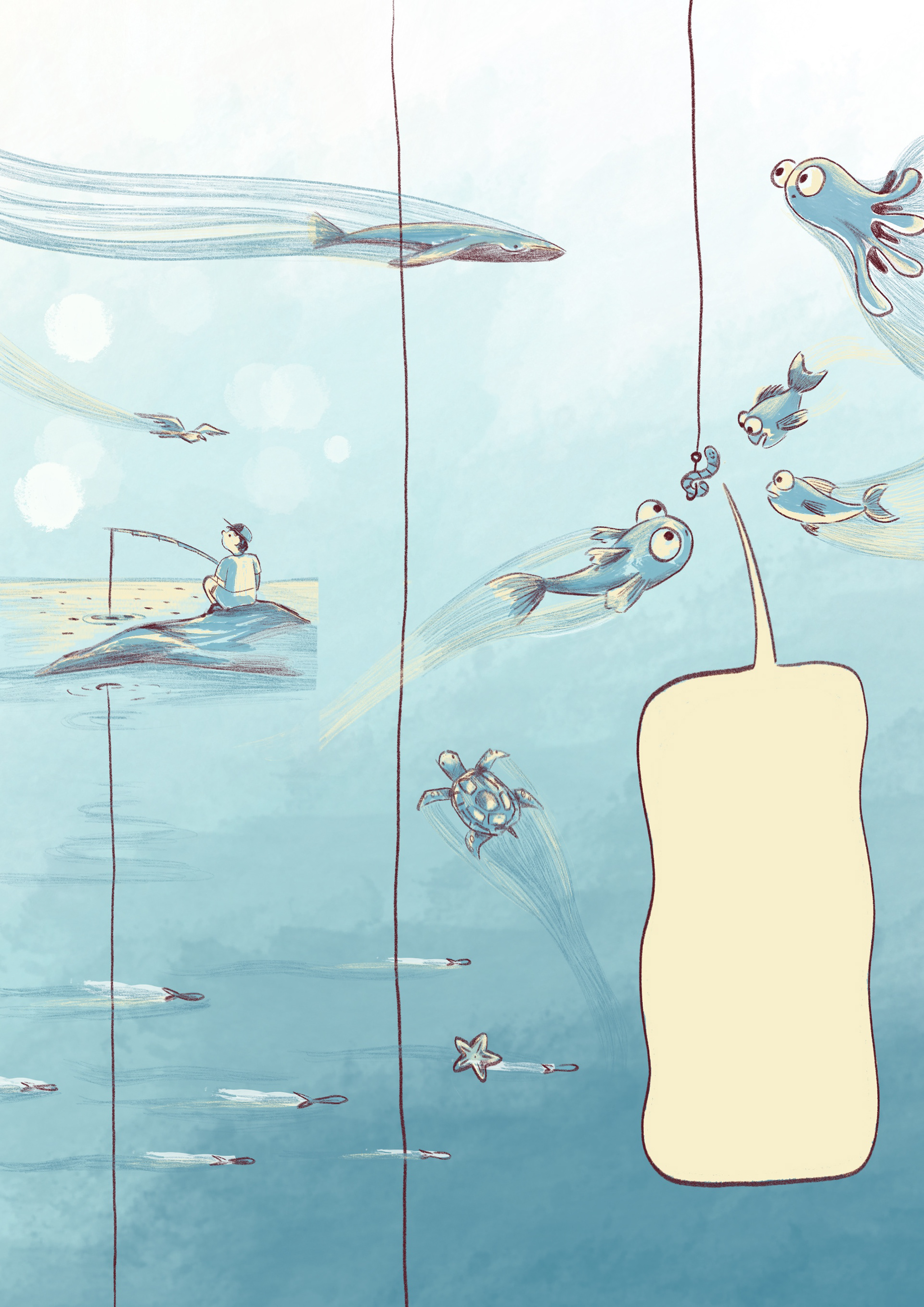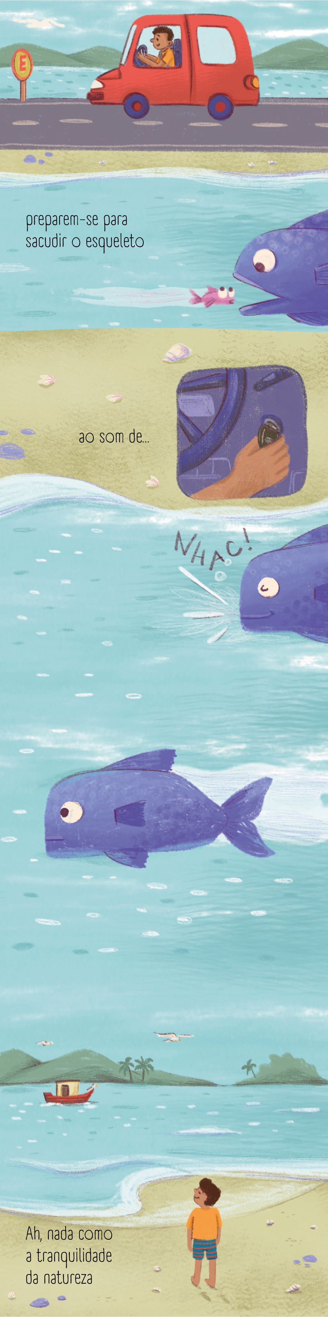 The story takes place by the seaside and plays with the contrast between the calm image we usually associate with nature and the lively, bustling rhythm of wildlife all around.
