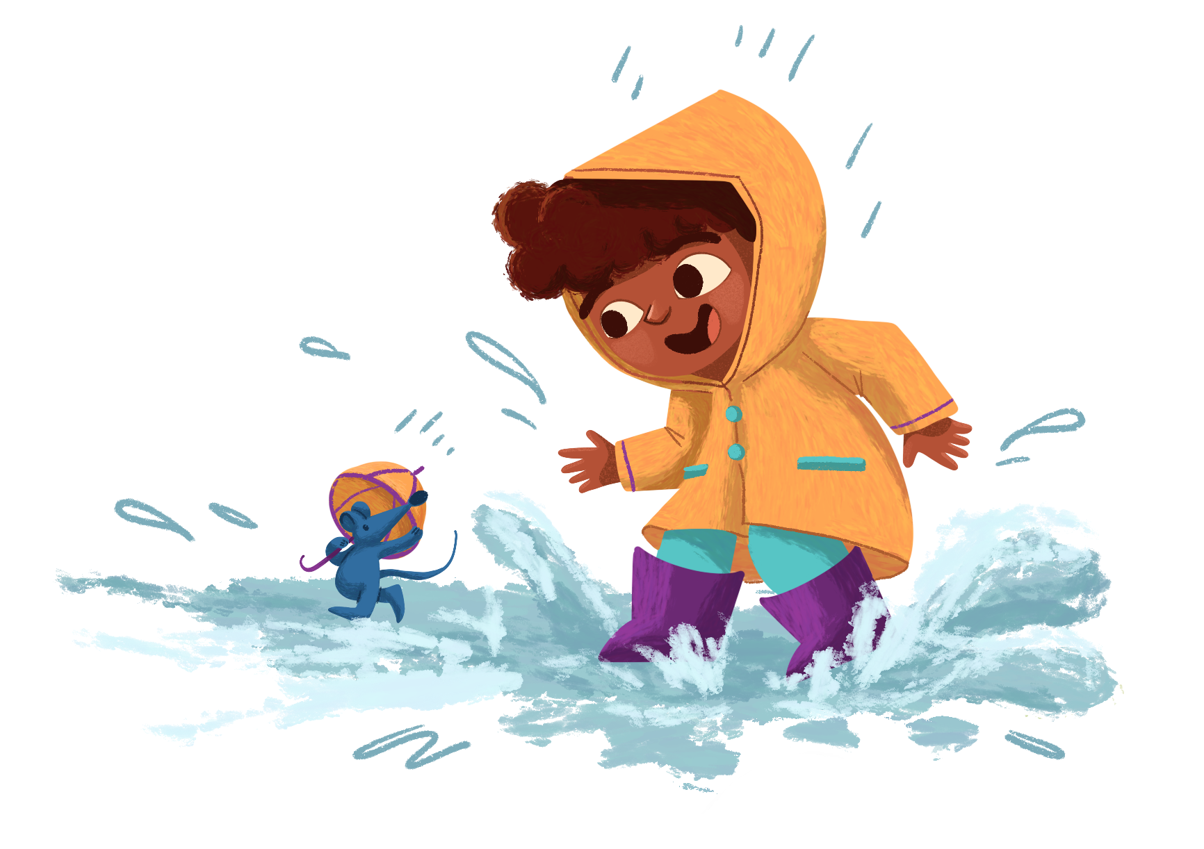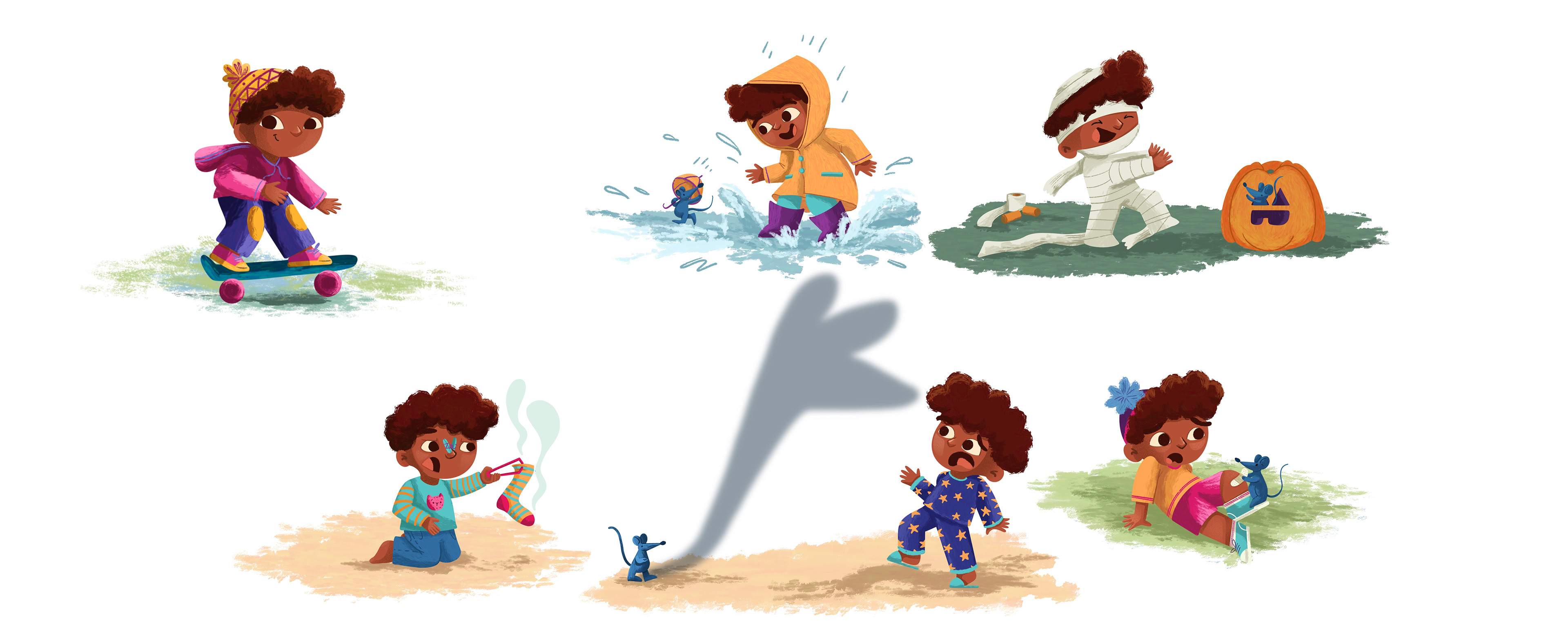 This is a character design study that features a boy and his unusual friend, a mouse.