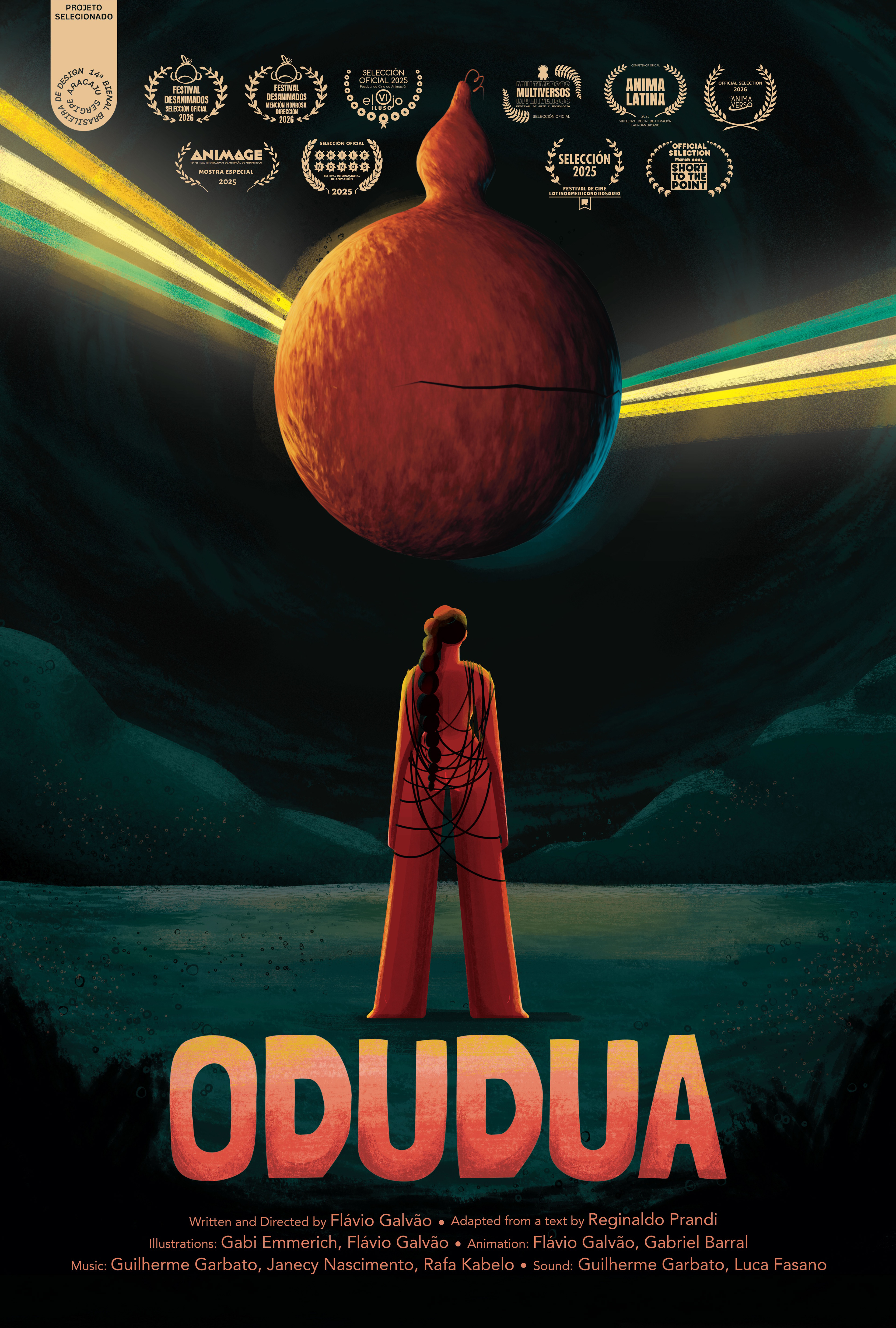 Odudua is an adaptation of a Yoruba myth about creation. In the middle of nowhere, two orixás live in a gourd with their seven rings. Every night these rings are shared, and most of the jewels always end up with the same orixá. Unhappy with this division, the divinity with fewer rings decides to break the tradition, generating irreversible changes.