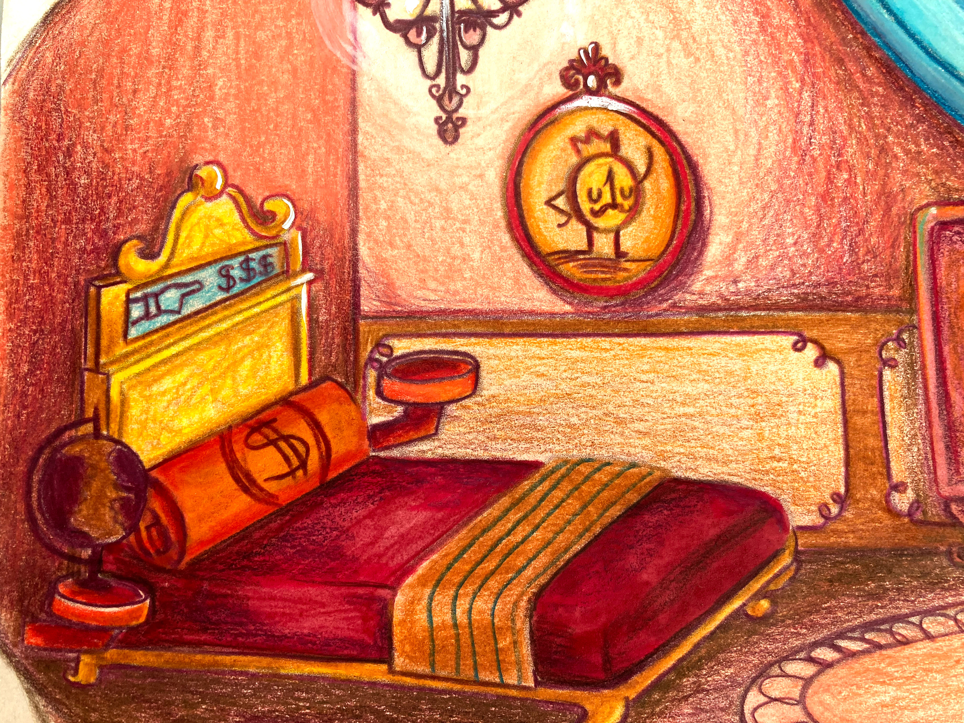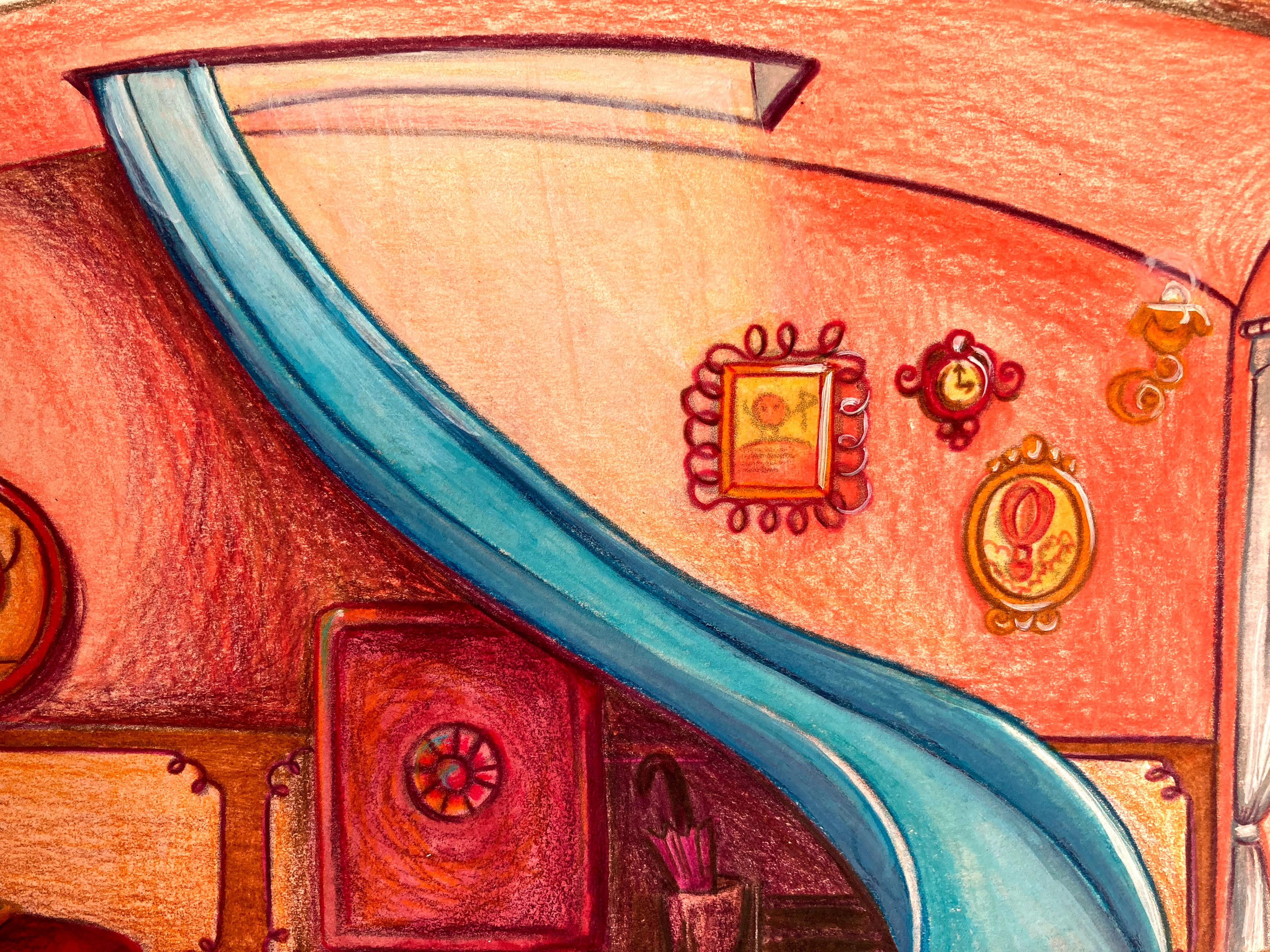 Illustration of this Casa Porco, made with colored pencils, gouache paint, and markers.